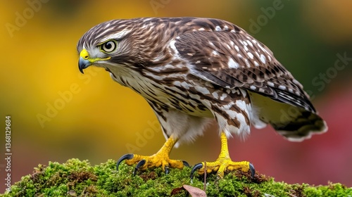 © creativeideh, Fototapeta premium Sharp-shinned Hawk Perched on Moss: A Stunning Close-Up
