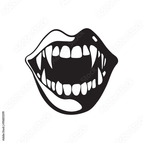 Naklejka premium Sharp vampire teeth, monster, mouth, lips