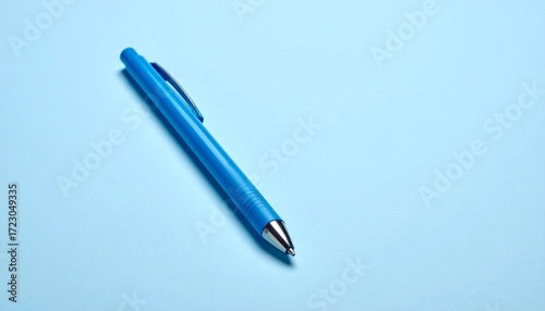 © bento, Fototapeta premium Sharpened blue pencil on light blue surface with pigment smear.