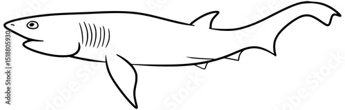 Fototapeta premium Sharpnose Sevengill Shark Vector Outline Line Art Drawing