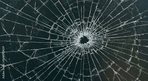 © Lily, Fototapeta premium Shattered dark glass, radial cracks, broken surface.