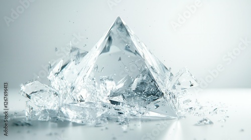 Obraz premium Shattered Glass Pyramid Reflecting Light Art Piece Abstract Image