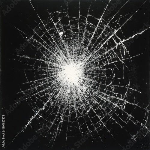 © Murad, Fototapeta premium Shattered Glass: Radial Cracks and Splintered Impact on a Black Surface, a Visual Study of Fracture and Damage.