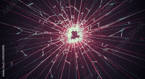 Obraz premium Shattered Glass Texture Abstract Red and Teal Cracked Glass Background