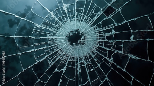 Fototapeta premium Shattered glass window with intricate central cracks design