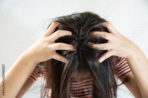 © Thachakrit, Naklejka premium She had a severe migraine headache