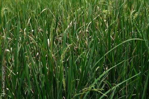 © Ombee, Fototapeta premium Sheath blight. Rice field diseases.