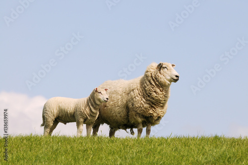 © Caro, Naklejka premium sheep and lamb standing on pasture