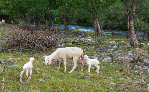 © lorenza62, Obraz premium sheep and lambs grazes in the meadow