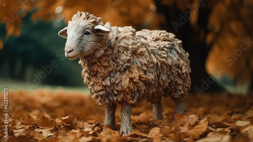 Obraz premium Sheep creature figurine in forest. Generative AI