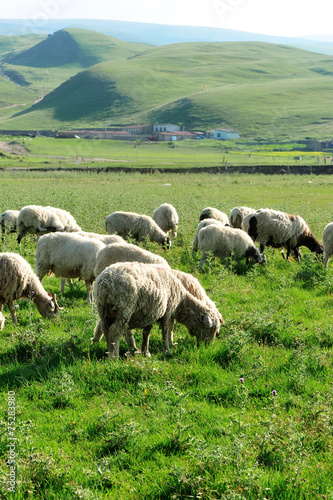 © lzf, Obraz premium Sheep eat in mountain meadow
