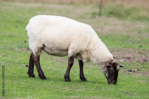 Fototapeta premium Sheep eating grass in a field