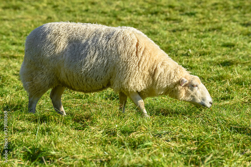 Obraz premium sheep eating green grass