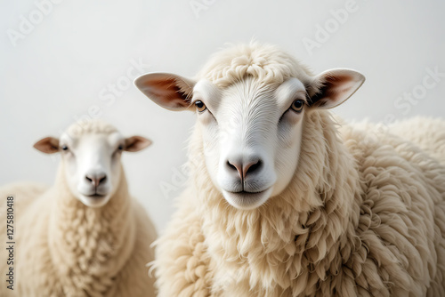 © taoufik, Fototapeta premium Sheep Facing Forward on White Background