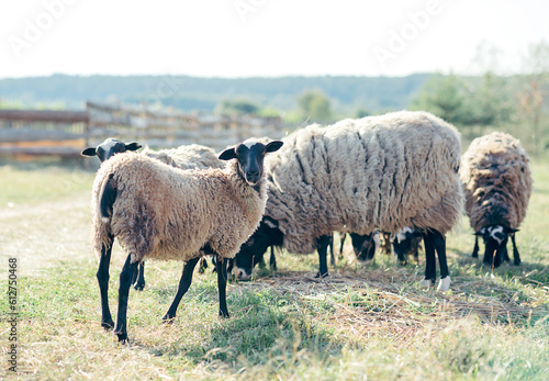 © lavju83, Obraz premium Sheep farm . feeding sheep
