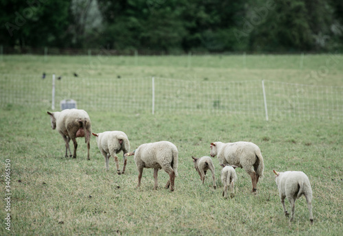 © Andrew, Fototapeta premium Sheep graze in the meadow.