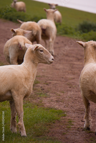 Fototapeta premium Sheep grazing in the British countryside.