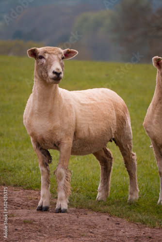 Fototapeta premium Sheep grazing in the British countryside.
