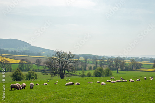 © Jenn's Photography , Obraz premium Sheep grazing in the fields.