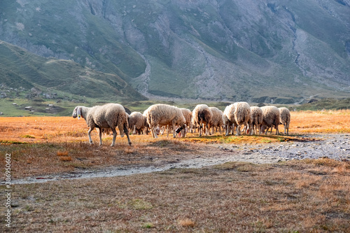 Obraz premium Sheep grazing in the high altitude meadows in autumn.