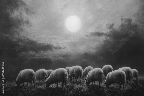 Fototapeta premium Sheep Grazing in Wildflower Field