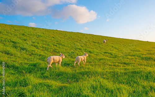 © Naj, Obraz premium Sheep grazing on a dike in spring