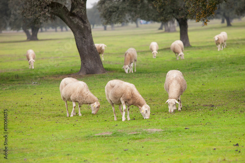 © Gelpi, Fototapeta premium Sheep grazing on a green meadow