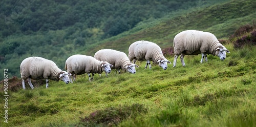 © AgungRikhi, Obraz premium Sheep Grazing on a Hillside