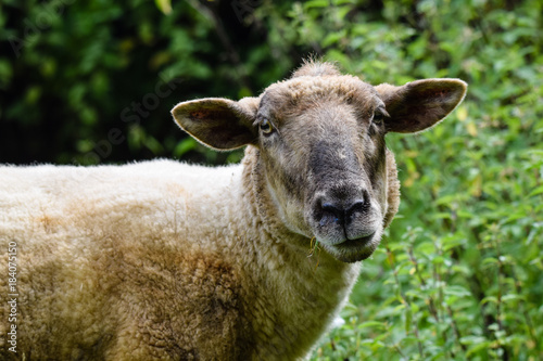 Naklejka premium Sheep grazing on a summer meadow