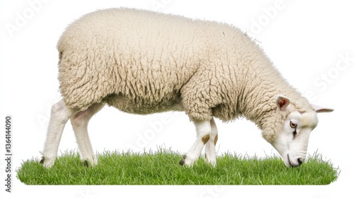 © Joriah, Obraz premium Sheep Grazing on Green Grass in a Natural Farm Environment
