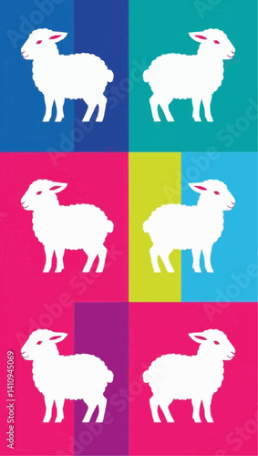 © Cedric, Obraz premium Sheep Icons in Pop Art Style