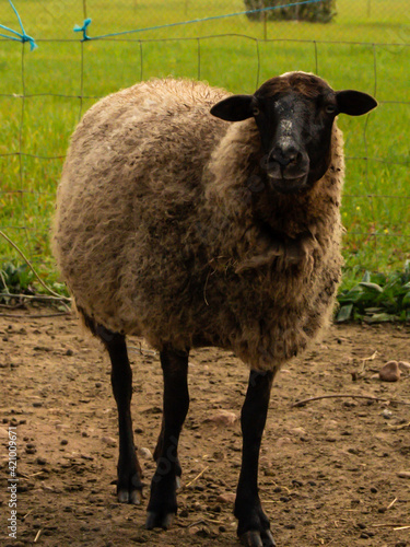 Fototapeta premium Sheep in a field - NATURE -BROWN FACE- grazing free- Oveja marron pasturando...