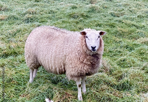 Fototapeta premium Sheep in a Rural Pasture Field, selective focus