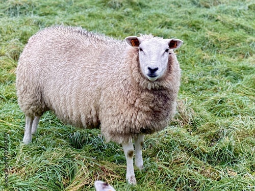 Fototapeta premium Sheep in a Rural Pasture Field, selective focus