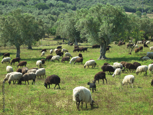 © tolism, Obraz premium sheep in an olive tree field