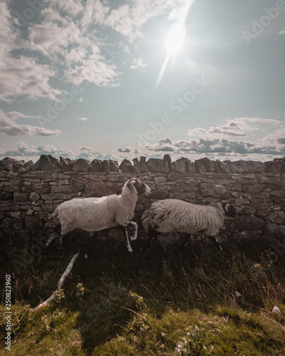 Fototapeta premium Sheep in front of Dry Stone Wall