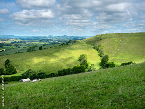 Fototapeta premium sheep in green hills of south dorset near jurassic coast