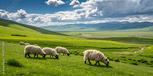 © AI NEX GEN, Obraz premium sheep in the meadow