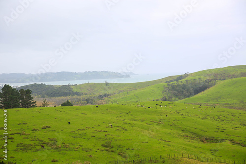 © ZHAO YOULI, Fototapeta premium Sheep in the pasture, Tawharanui, New Zealand