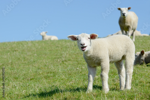 © Caro, Fototapeta premium sheep lamb standing on meadow and bleating