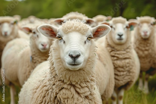 © InfiniteStudio, Fototapeta premium Sheep looking at camera against herd