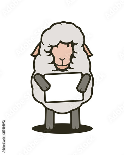 Obraz premium Sheep mascot with tablet with your text