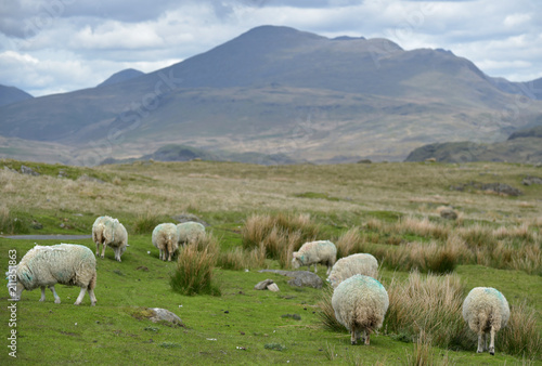 © davidyoung11111, Obraz premium Sheep near Devoke Water with Dunnerdale Fells in Lake District
