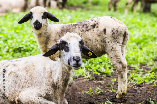 © fotosr52, Fototapeta premium sheep on a green meadow