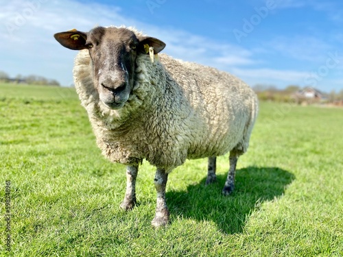 © Noah, Fototapeta premium Sheep on a green meadow in good weather