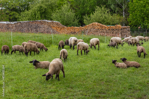 © electricmango, Fototapeta premium sheep on a meadow eating grass
