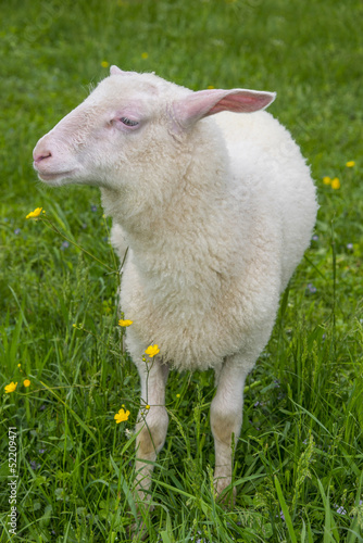 © Vera Kuttelvaserova, Obraz premium sheep on a meadow with flowers