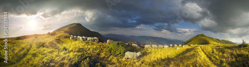 © panaramka, Naklejka premium Sheep on a mountain pasture