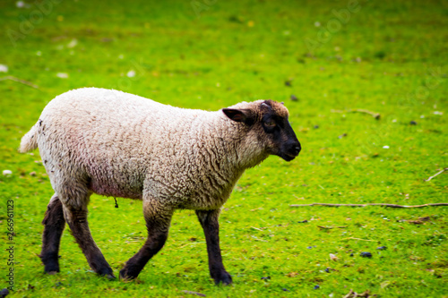 © David, Fototapeta premium Sheep on local farm on spring day