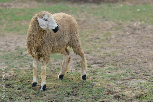 © rnophoto, Obraz premium sheep on the grass in the corral.